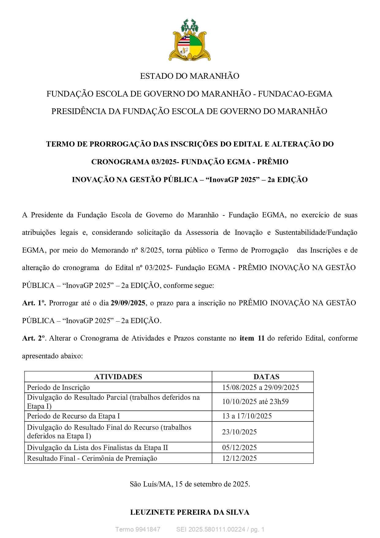 PRORROGAÇÃO DAS INSCRIÇÕES DO EDITAL 03/2025- FUNDAÇÃO EGMA – PRÊMIO INOVAÇÃO NA GESTÃO PÚBLICA